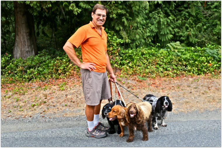 walks with his dogs too