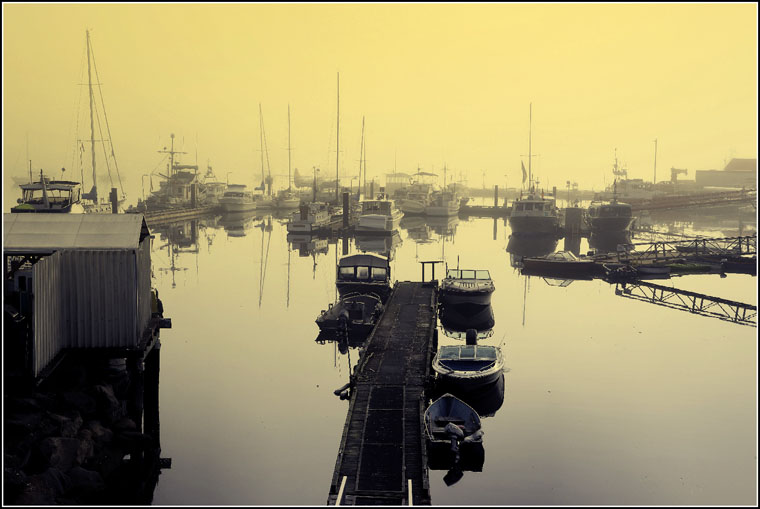 ganges harbour bathed in fog and sunlight simultaneously it’s that time of the year