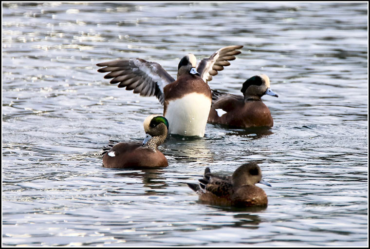 four ducks fulford harbour three of them shielding the one showing off her impressive chest probably hoping 'no peking duck' this christmas