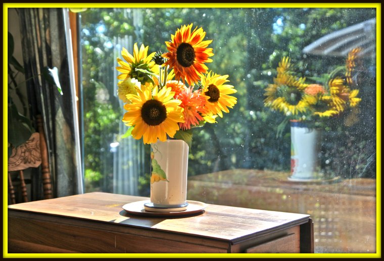 fulfordfoto (fff) sunday 07october2012 01:55pm pdt sunflowers and dahlias when i get tired of looking at the tv (football baseball golf) and the computer screen (the possibilities are mindless) i can look over there at the thanksgiving arrangement compliments of ray and elsa happy thanksgiving mom and all fffclick on photo to go back in time