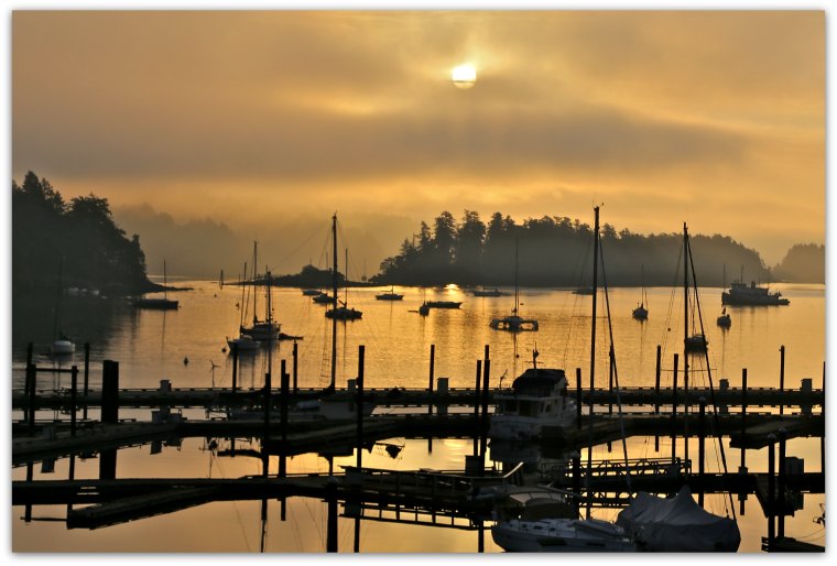 golden morning emerges from a fogged in dawning