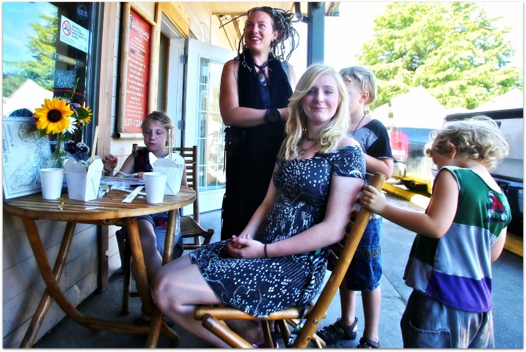here she is with mama tusa and her sister and brothers in downtown ganges tuesday 28july2015