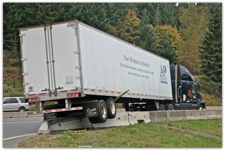 fulfordfoto (fff) saturday 05october2013 08:50am pdt near cassidy bc oops!!! as this happened at an exit from a rest area i wonder if perhaps the driver was not fully awake when he took this unfortunate shortcut “i came to photography fffclick on photo to go back in time