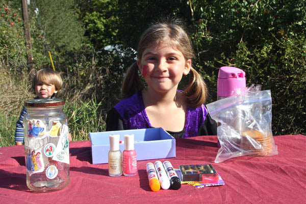 there's my friend layla who is about to paint apples on my face and who keeps her little brother in a jar on the table