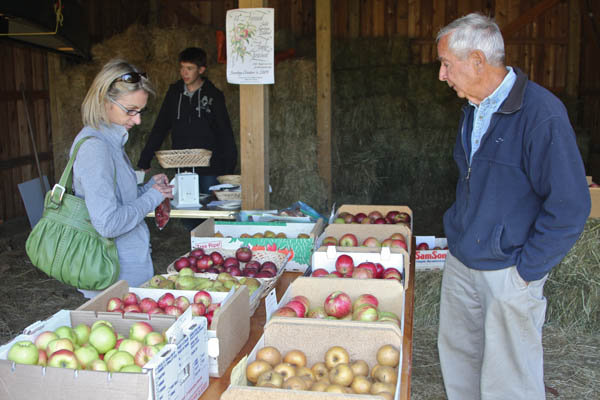 bob wheeden (right) shows off some of his 138 species of heritage apples