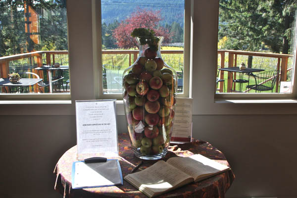 where better to finish the apple festival tour to guess how many apples are in this gigantic decanter and to have a glass of wine